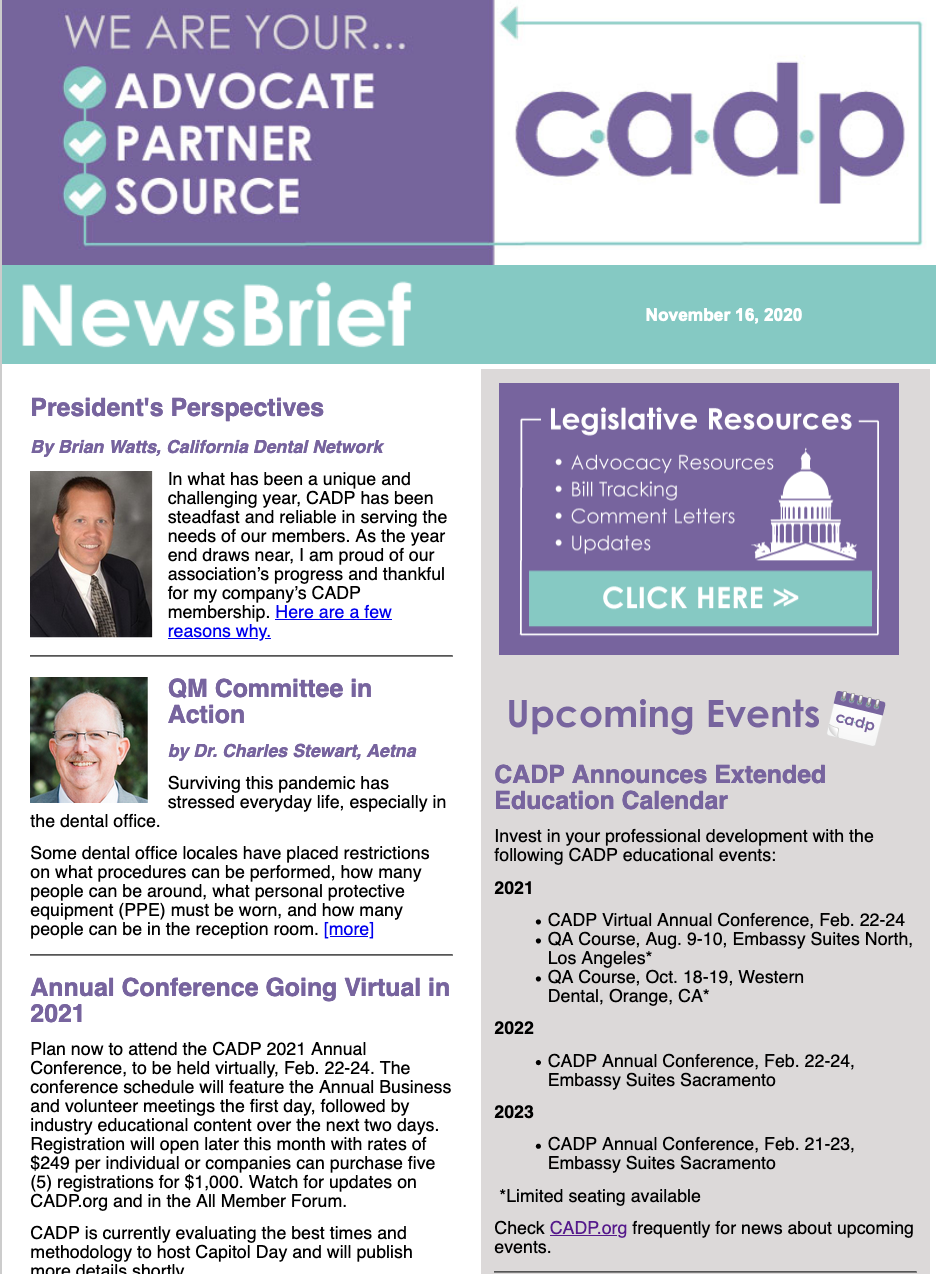 CADP News Brief is your exclusive monthly eNewseltter, filled with members’ only information, delivered directly to your inbox. Please see a list of archives below. Click on thumbnails to access newsletters. Note: In 2020, CADP began to publish the NewsBrief 3-4 times a year vs. every month.